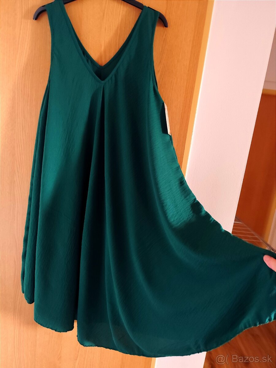 Krásne ľahké šaty talianskej značky, s visačkou. Materiál viskóza. Fotka skresľuje reálnu farbu šiat, preto pridávam k fotkám vzorkovník zelených farieb a zakrúžkovala som najviac podobnú farbu šatám.