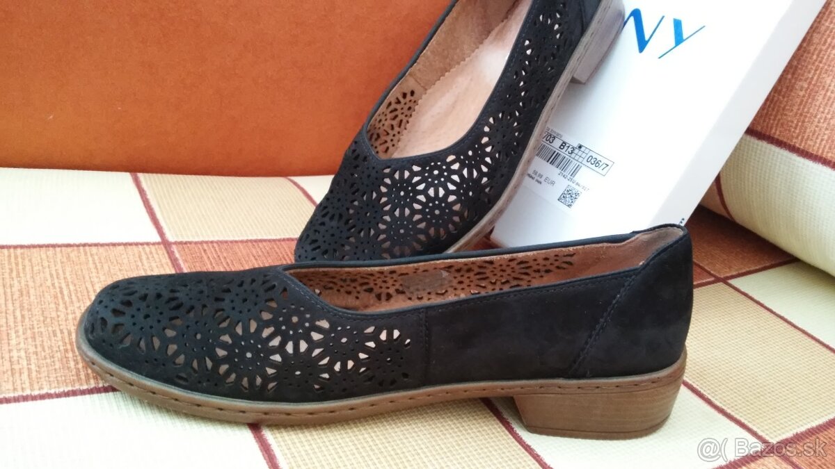 Baleríny značky Jenny, čierne, kožené, veľkosť 5, NOVÉ-obuté len pri jednej príležitosti. Pôvodná cena 60€. Mám ich aj ja-sú pohodlné, ľahká flexibilná podrážka