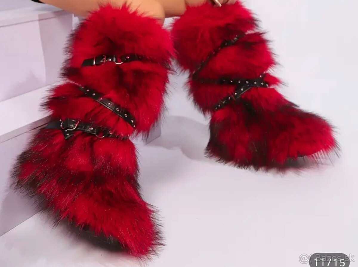 Predam zimne cizmy nove velkost 40-41 s cervenou kozusinou su s okrasnymy remencami dlzka pod kolena