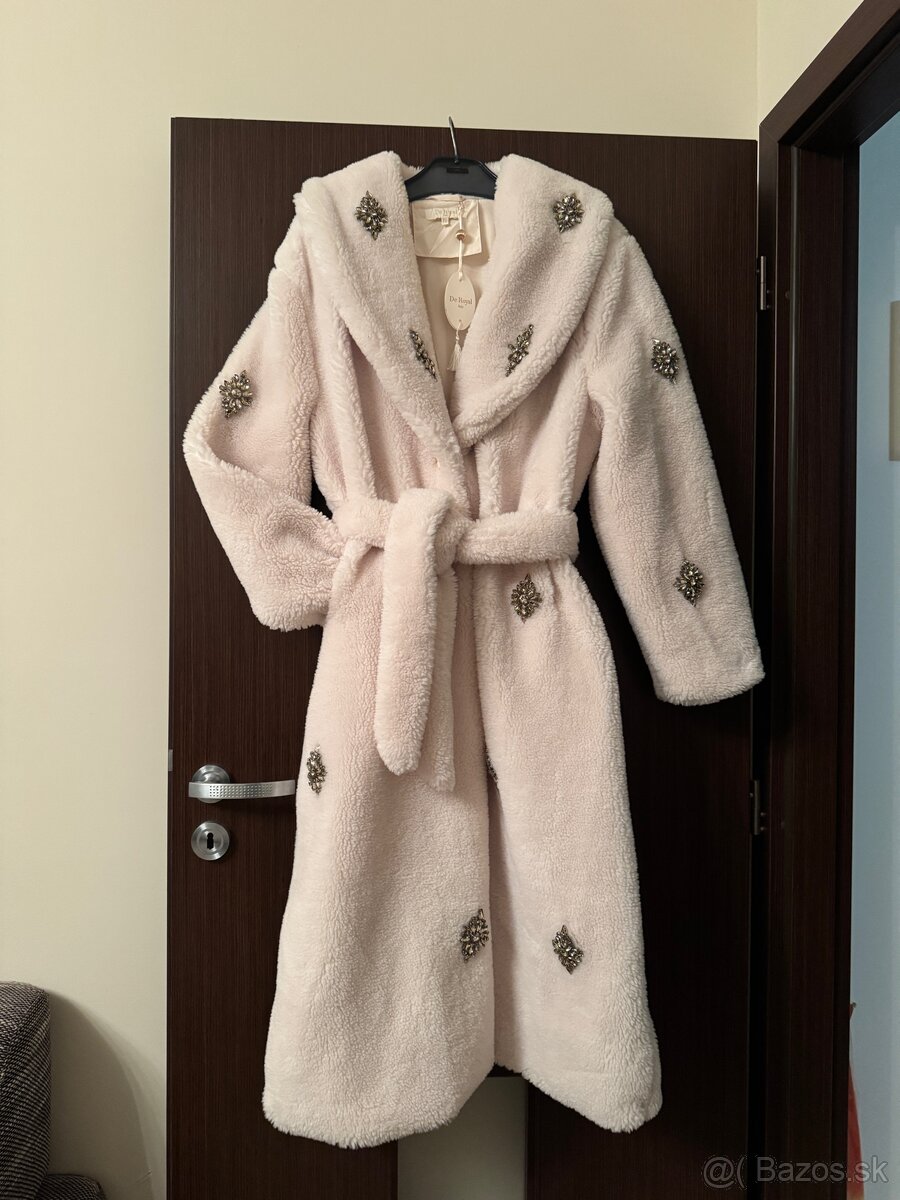 Predám luxusný umelý kožuch s kryštalmi. Veľkosť uni. Uplne nový s visačkou. Iba vyskúšaný. Dĺžka 115 cm Dĺžka rukáva 60 cm Obvod hrudníka 105 cm . Povodna cena: 120€