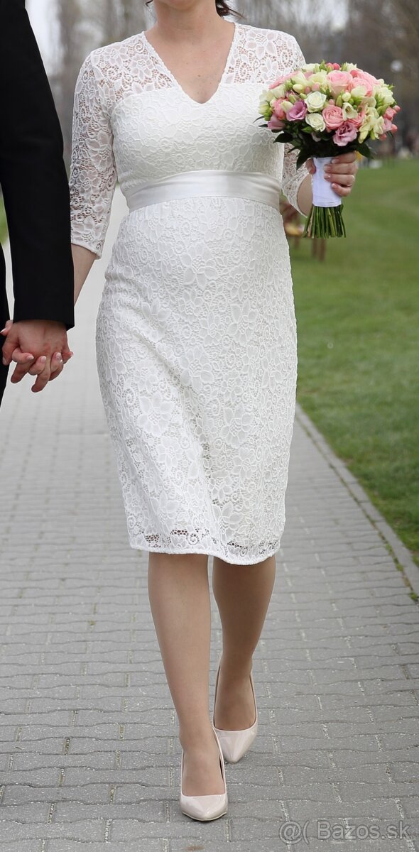 Tehotenské svadobné šaty S