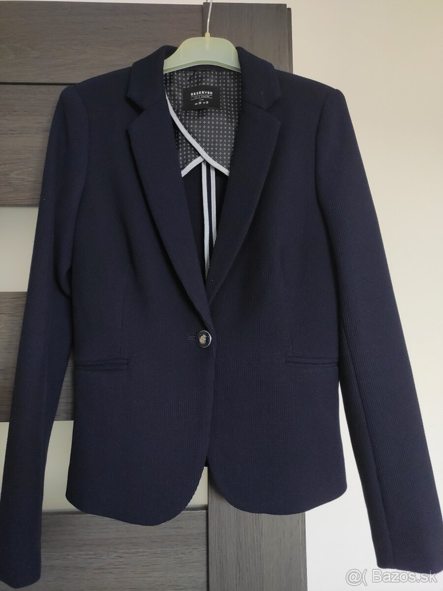 Predám dámske elegantné sako tmavomodrej farby, veľkosť 38. Oblečené 2x, ako nové.
