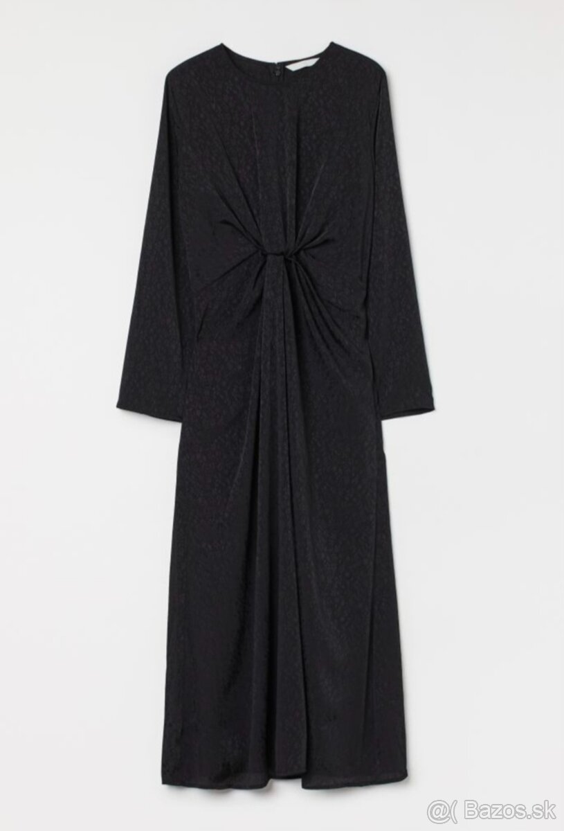 Šaty do pol lýtok z tkanej látky s okrúhlym výstrihom, zapínaním na skrytý zips na chrbte a dlhými rukávmi. Ozdobný uzol vpredu pre nariasený efekt. Nepodšité.