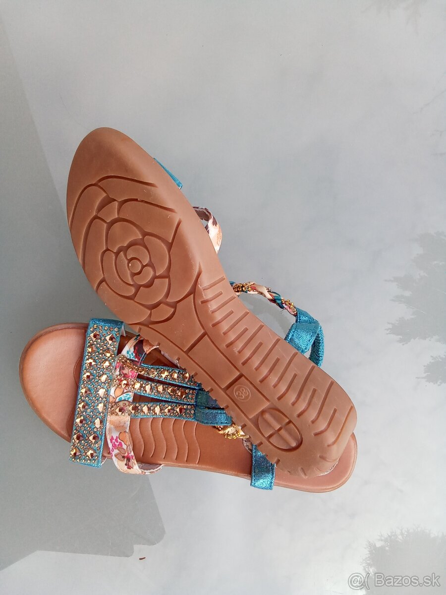 Predám čierne kožené lodičky zn. Wojas veľkosť 38 cena 40€. Sandále modré na klinku kožené Zn. Guess veľkosť 38 cena 40€. Sandále zn. Aldo,semiš-koža pudrovoružová farba, veľkosť 38,cena 25€. Sandále kožené na klinku béžová farba Zn. Tamaris veľkosť 39 cena 25€. Bonus sandále farebné, veľkosť 38.