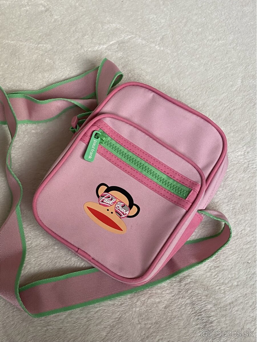 Ružová crossbody kabelka s nastaviteľným popruhom značky Paul Frank. Výborný stav.