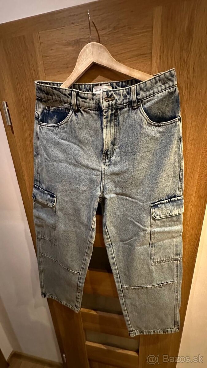 Ponúkam na predaj štýlové pánske cargo džínsy značky House v modernom svetlomodrom "acid wash" prevedení. Nohavice majú praktické bočné vrecká a kvalitné spracovanie, ktoré je typické pre túto značku.