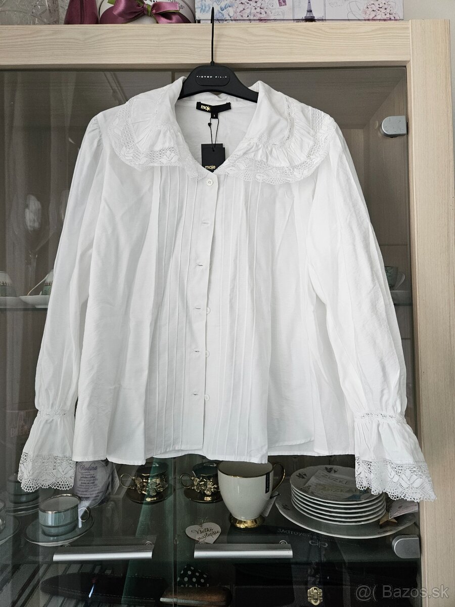 Krasna bluzka kvalitnej znacky MAJE. Bavlna s cipkou. Nadherny kusok. PC 169€. Velkost 1, sedi na S. Cena 70 Eur + post. Na dobierku neposielam. Tel vymysleny. Pozrite aj moje ostatne inzeraty, triedim satnik =)