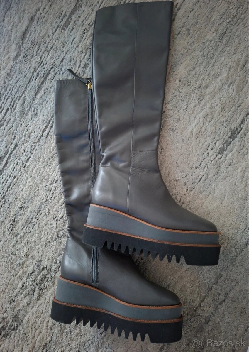 Predám dámske čižmy po kolena, kožené, nové bez visačky. Veľkosť 38, farba kaki, značka Paloma Barcelo