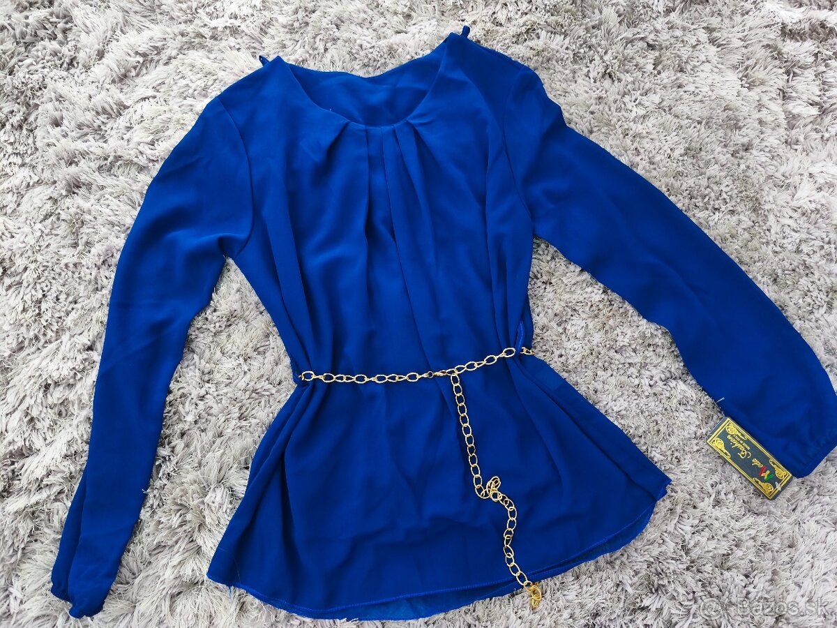 Modrá blúzka s opaskom S/36