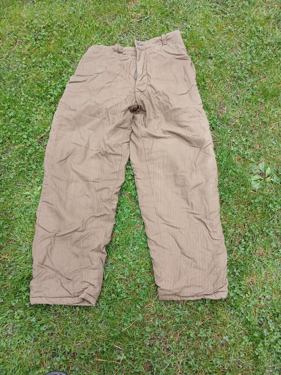 Ponúkam na predaj 2 kusy hrubých zimných zateplených nohavíc, známe ako "vatované" alebo "prešívané". Ide o robustný a teplý kus oblečenia, ideálny na prácu v chlade, do lesa, pre poľovníkov, rybárov alebo ako retro vojenský/pracovný odev.