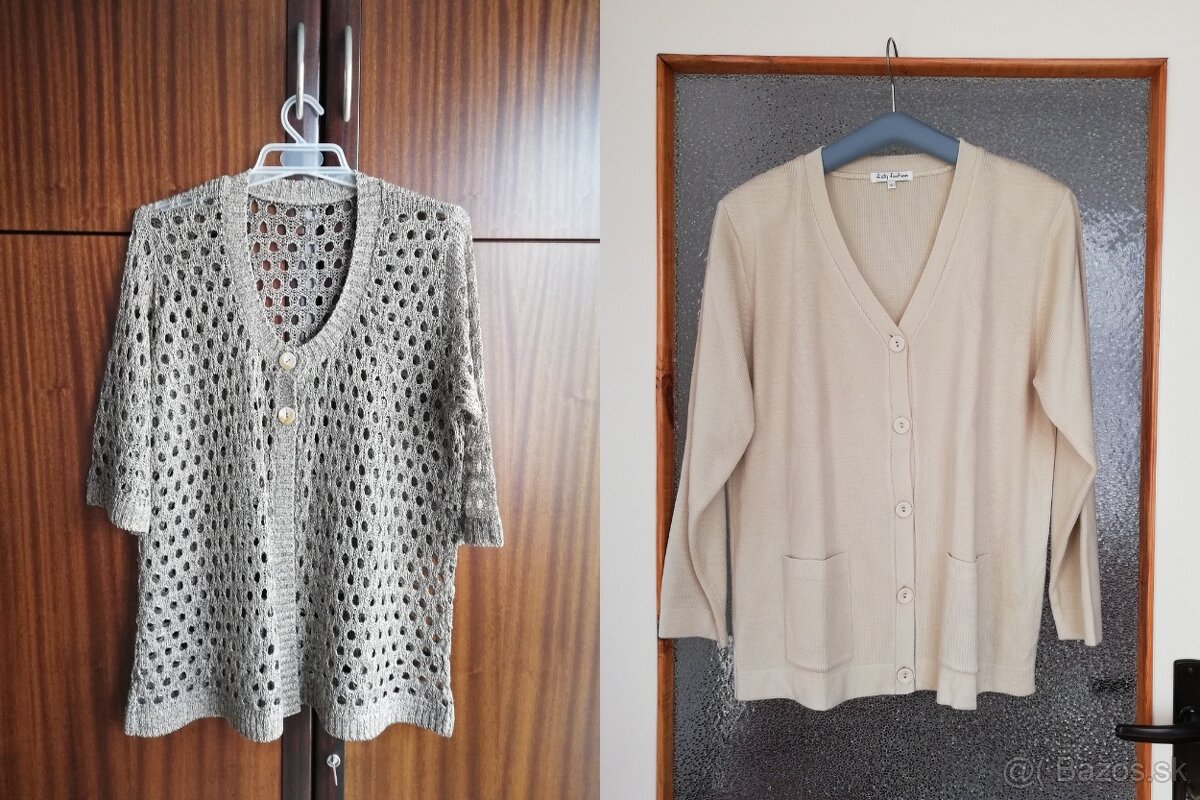 1.Elegantný dierkovaný svetrík na 2 gombíky, 3/4 rukávy, šírka v páse 53 cm-ako nový oblečený 2x Vhodný v lete na chladnejšie dni, alebo v zime ako skvelý doplnok na rolák či tričko