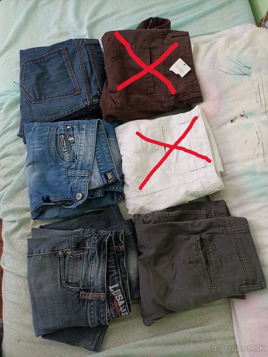 Predám nohavice a rifle: sivé nohavice sú zošité na stehne šírka v páse 40 cm dĺžka 92 cm cena 2 eurá, čierne rifle šírka v páse 40 cm dĺžka 90.5 cm cena 3 eurá - sú v dobrom stave, tmavomodré rifle ako nové šírka 42 cm dĺžka 92 cm cena 5 eur, slabo modré rifle ako nové šírka 40 cm dĺžka 90 cm cena 5 eur. Prosím píšte mail, tel.č je vymyslene.