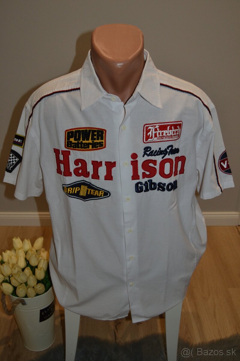 2. Biela košeľa k nášivkami, veľkosť XL, obvod cez prsia 118 cm, dĺžka 73 cm
