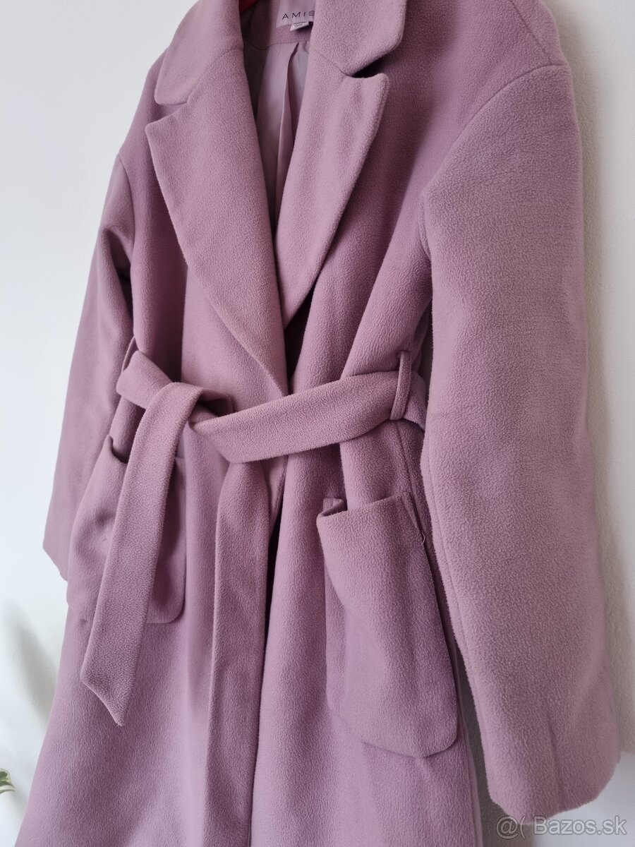 Predám krásny zachovalý kabát v zaujímavej farbe. Značka Amisu, veľkosť 38. S dvomi veľkými vreckami a opaskom v páse. Dá sa nosiť ako oversize, ale i ako Áčkový keď sa použije opasok.