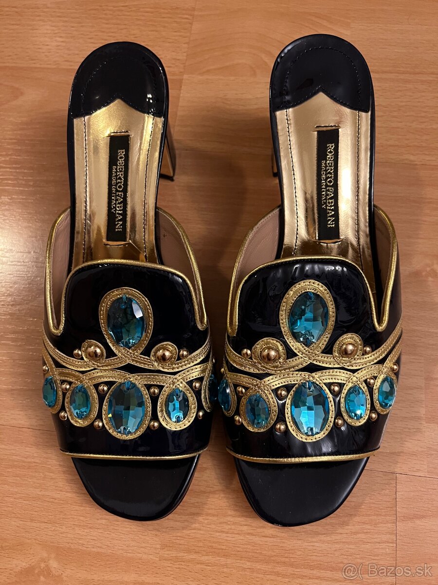Predám dámske luxusné šľapky zn. Roberto Fabiani, originál, kúpené v Dubai, ako nové (pár krát použité), veľkosť 41, cena 50,- EUR, najlepšie osobný odber BA 5, inak + poštovné