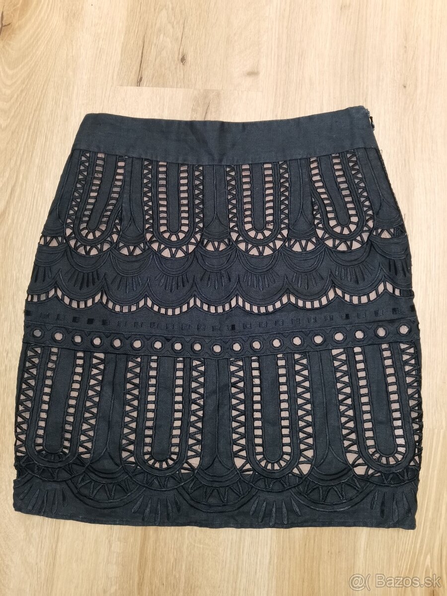 Sukňa je čierna vykrajovaná, pod ňou je hnedá spodnička. Veľkosť uvedená S, no sedí skôr na Xs, zmerajte. Pás 33 cm x 2, dĺžka 45 cm. Materiál je pevný. Blúzka a šľapky v ďalšom mojom inzeráte.