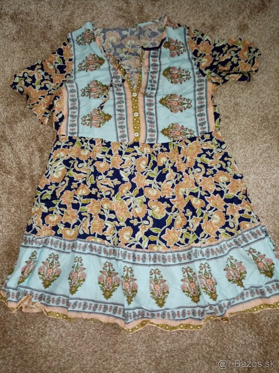 Za sumu 7 € predám úplne nové letné šaty veľkosť M vhodné na nižšiu postavu /mne sú mierne nad kolená pri výške 165 cm /. Šaty sú z príjemného tenkého materiálu, vzdušné.