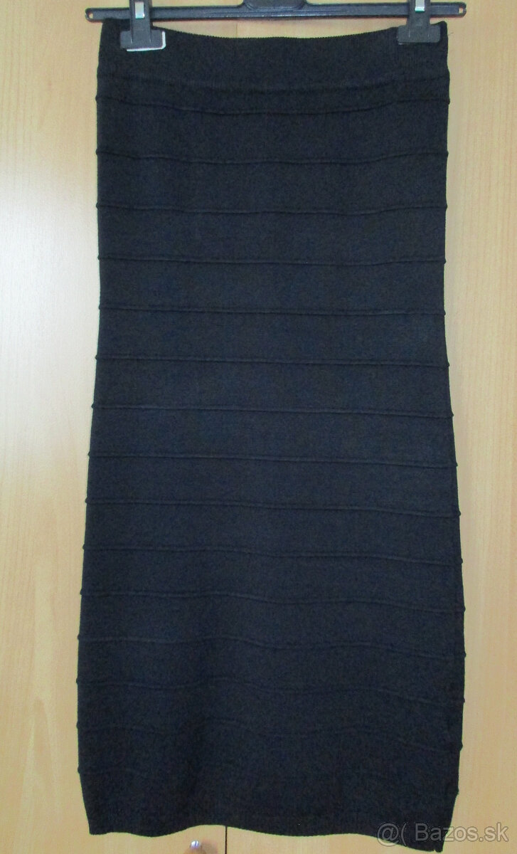 Predám novú_nenosenú a nepranú sukňu. Bandážový vzor. Veľkosť: nečíslovaná- jednočíslo. Rozmery: celková dĺžka sukne: 75 cm, pás (gumový): 2x 32 cm v nenatiahnutom stave, avšak dá sa natiahnuť cca do 2x 38 cm. Farba: čierna. Materiál: 82% viskóza, 18% lykra- je veľmi poddajná, elastická. Odosielam aj obyčajne. INFO prosím EMAILOM. Pozri všetky moje inzeráty.