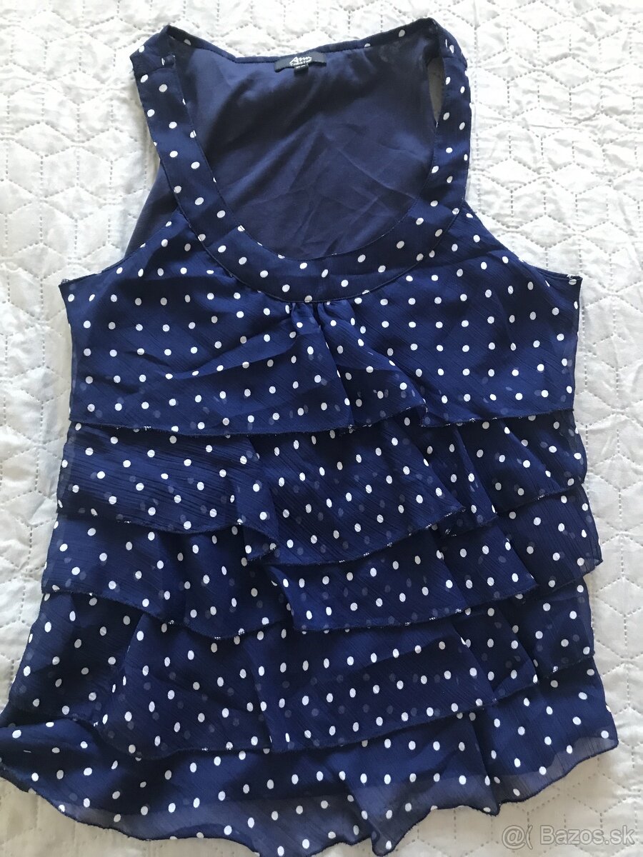 biela bluzka s modrymi bodkami