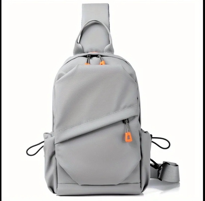Na predaj nový, nepoužívaný pánsky crossbody batoh (známy aj ako hrudná taška alebo sling bag) v sivo-oranzovom farebnom prevedení. Tento štýlový doplnok je navrhnutý na každodenné nosenie, cestovanie alebo športové aktivity.