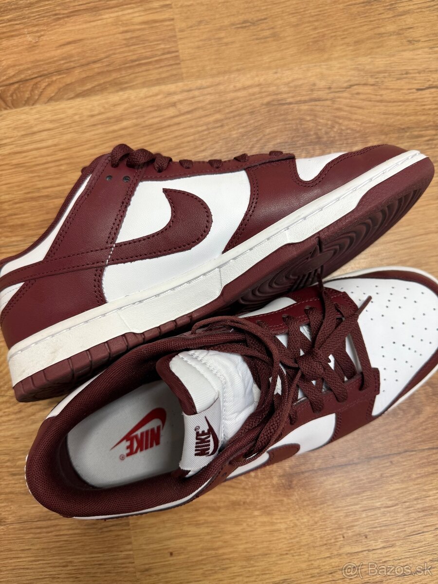 Predám pánske tenisky Nike Dunk Low Retro vo veľkosti 42,5 (US 9). Farba burgundy. Raz nosené. Cena bez dopravy, prípadne osobný odber v rámci BA.