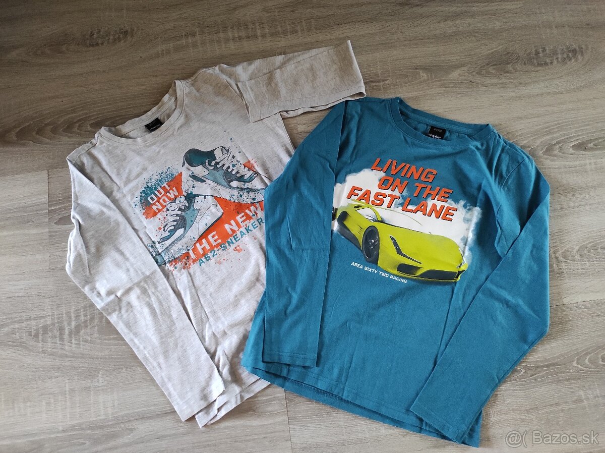Predám raz oblečené tričká s dlhým rukávom veľkosť 146/152, cena za obidva spolu
