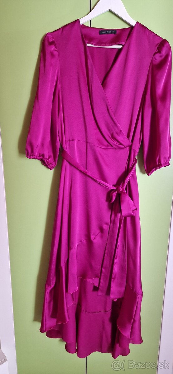 Super saténové šaty v top stave. Krásna cyklaménová farba. Vzadu dlhé, vpredu krátke. Vhodné na svadbu, ples, stužkovú. 2x oblečené
