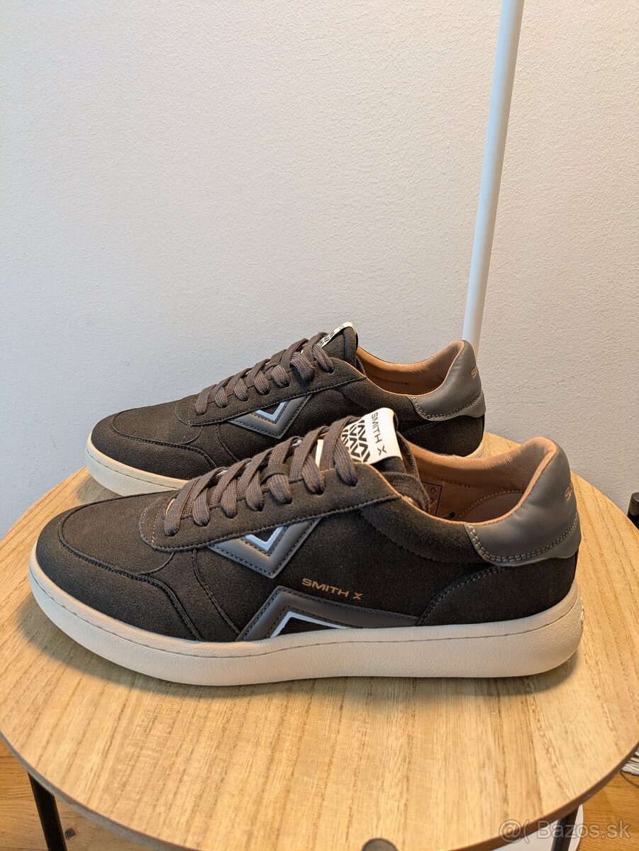 Predám čisto nové, nikdy nenosené pánske tenisky značky SMITH X, model Ocean Man. Ide o modernú obuv v elegantnom tmavosivom prevedení (Dark Grey), ktorá v sebe spája špičkový dizajn a maximálne pohodlie. Tenisky sú ešte v originálnej krabici.
