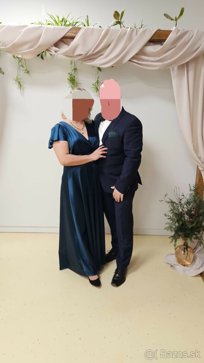 Predám tieto saténové šaty.Oblečene 1x na plese.Vyčistené profesionálne.Je to tažší kvalitný satén.Petrolejovej farby veľkosť L na výšku 165 cm.Pás 80cm.Majú vystužené prsia a veľkosť sa prispôsobí nakoľko majú výstrih.