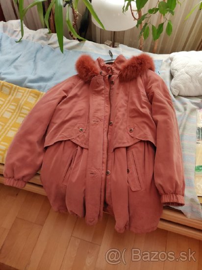 Zimná zateplená bunda s odnímateľnou kapucou s golierom z líšky. Bunda je z dvojcestným zipsom a gombíkmi. Sťahovateľnou šnúrkou na páse a kupucni. Veľkosť 44