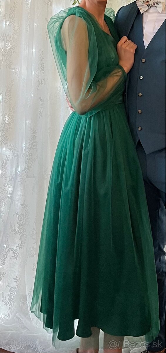 Na mieru šité spoločenské šaty, raz oblečené vypraté. Rozmery: Šírka v páse 30 cm, dĺžka 122 cm, šírka pod ramenami 39 cm, dĺžka rukáva od ramena po zápästie 60 cm. V rámci Košíc možnosť prísť vyskúšať.