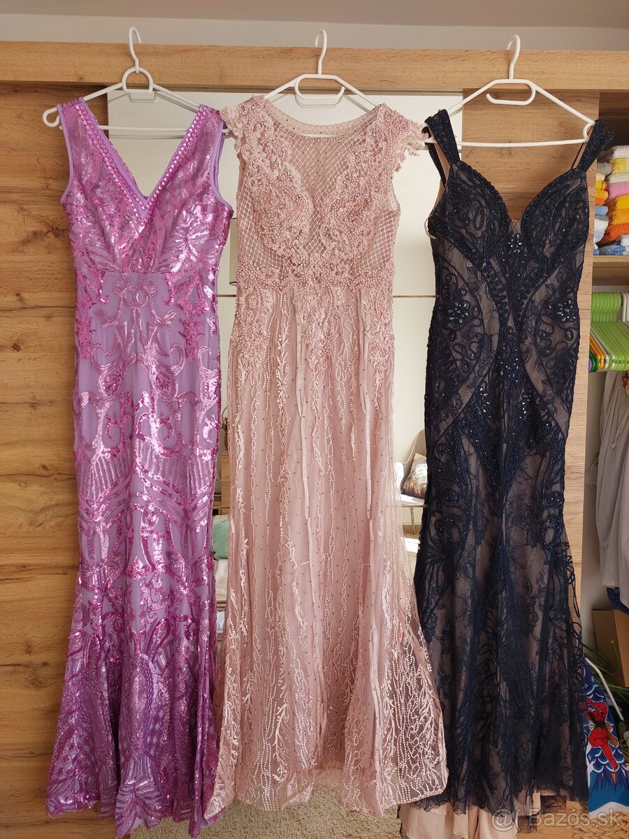 Predám nenosené spoločenské šaty s čipkou/flitrami. Ružové veľkosť L, fialové a tmovo modré veľkosť M. Nie je problém aj vyskúšať, ak by išlo o osobný odber.Poštou po prevode na účet + poštovné, prípadne na dobierku