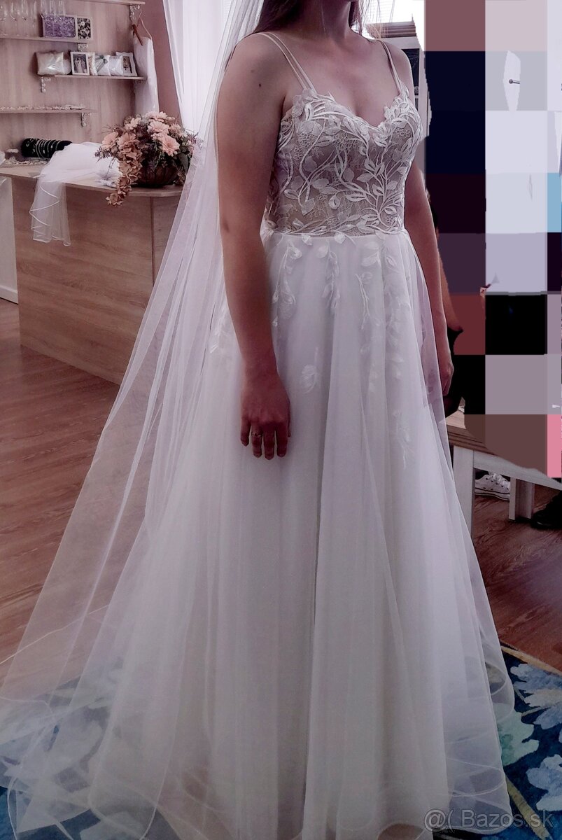Predám nádherné svadobné šaty - TOP - [29.3. 2026]Pôvodná cena,za ktorú som tieto šaty kupovala v svadobnom salóne: svadobné šaty- 600€,spodnička- 23€,závoj- 25€.