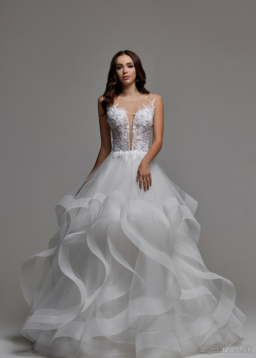 Predám nádherné svadobné šaty, biele, veľkosť 32/34, ľahučká sukňa