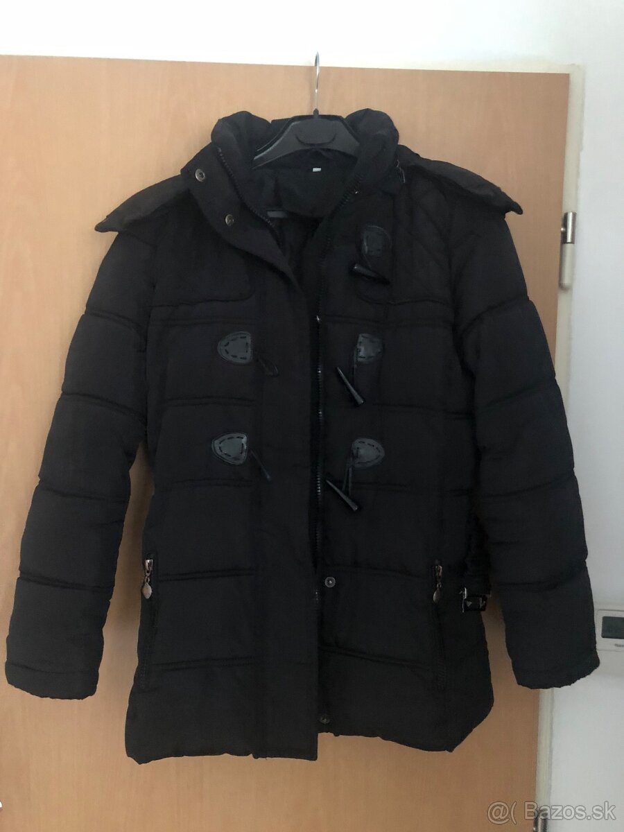 Predám zachovalú , dámsku zimnú bundu, čierna farba, s kapucňou , dá sa odopnúť - zips, vpredu zapínanie na zips, pukačky, veľké ozdobné gombiky, v páse opasok na zacvaknutie , vpredu dve vrecká na zips. Bunda je teplučká , vhodná aj do väčších mrazov , veľkosť M.