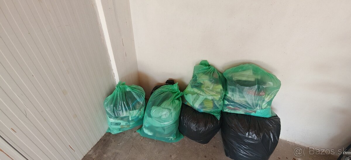 Na predaj 7 vriec oblečenia, nohavice, tričká, mikiny + aj detské oblečenie. Predáva sa len v celku.