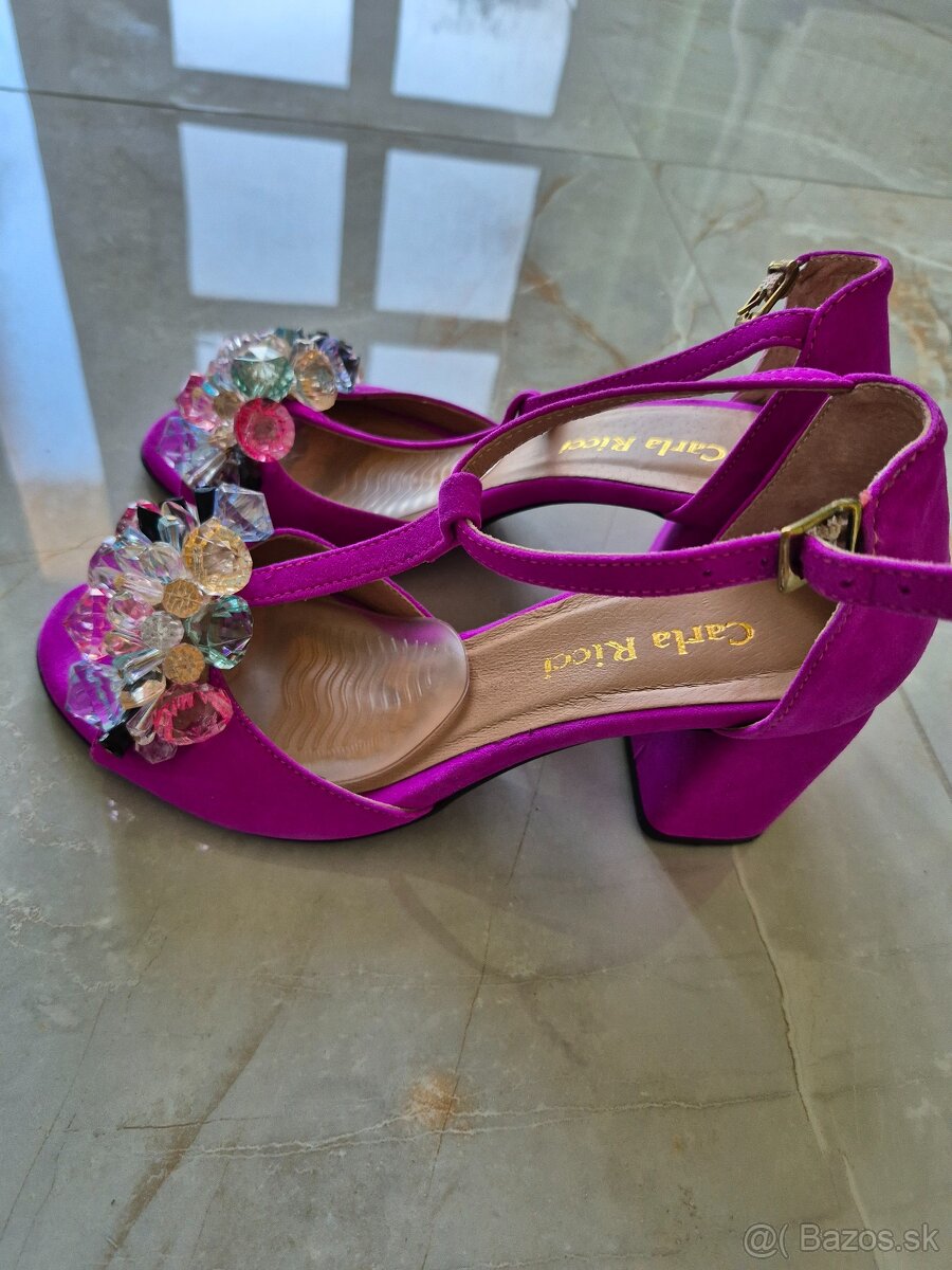 Ponúkam prekrásne kožené sandále raz obuté, veľkosť 38 cena pôvodná 68euro nová cena 38euro.vyška podpätku 7cm.