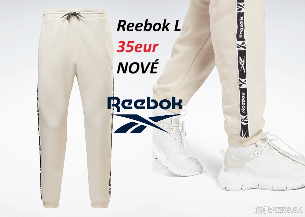 Predám pánske tepláky Reebok, veľkosť L. Farba béžová a šedá. Je to strih regular fit - pravidelný strih. Cena 35eur za jedny.