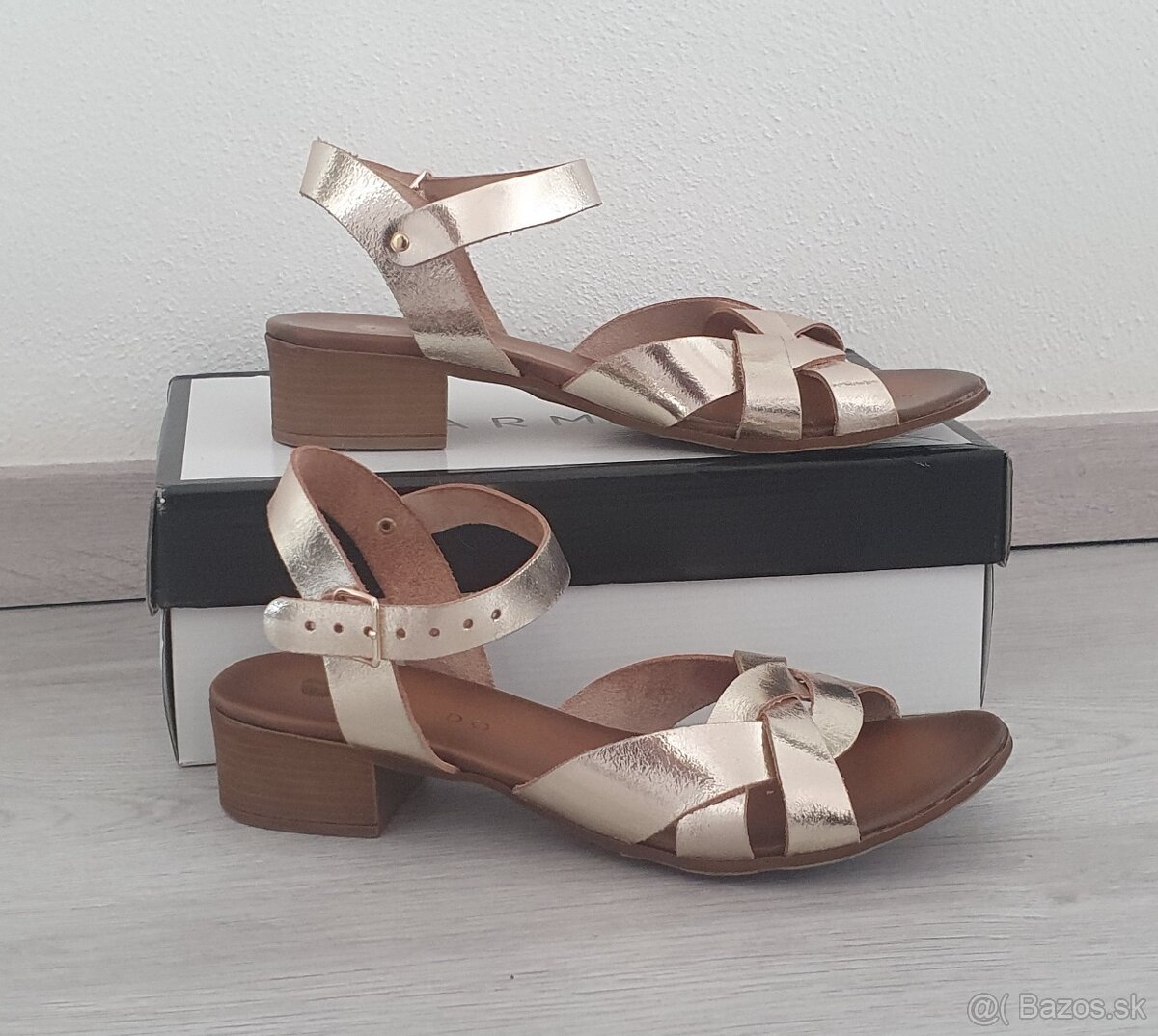 Kožené sandále v.40, dĺžka 26cm, podpätok 4cm, 1x obuté, PC 75€, teraz 35€+poštovné.