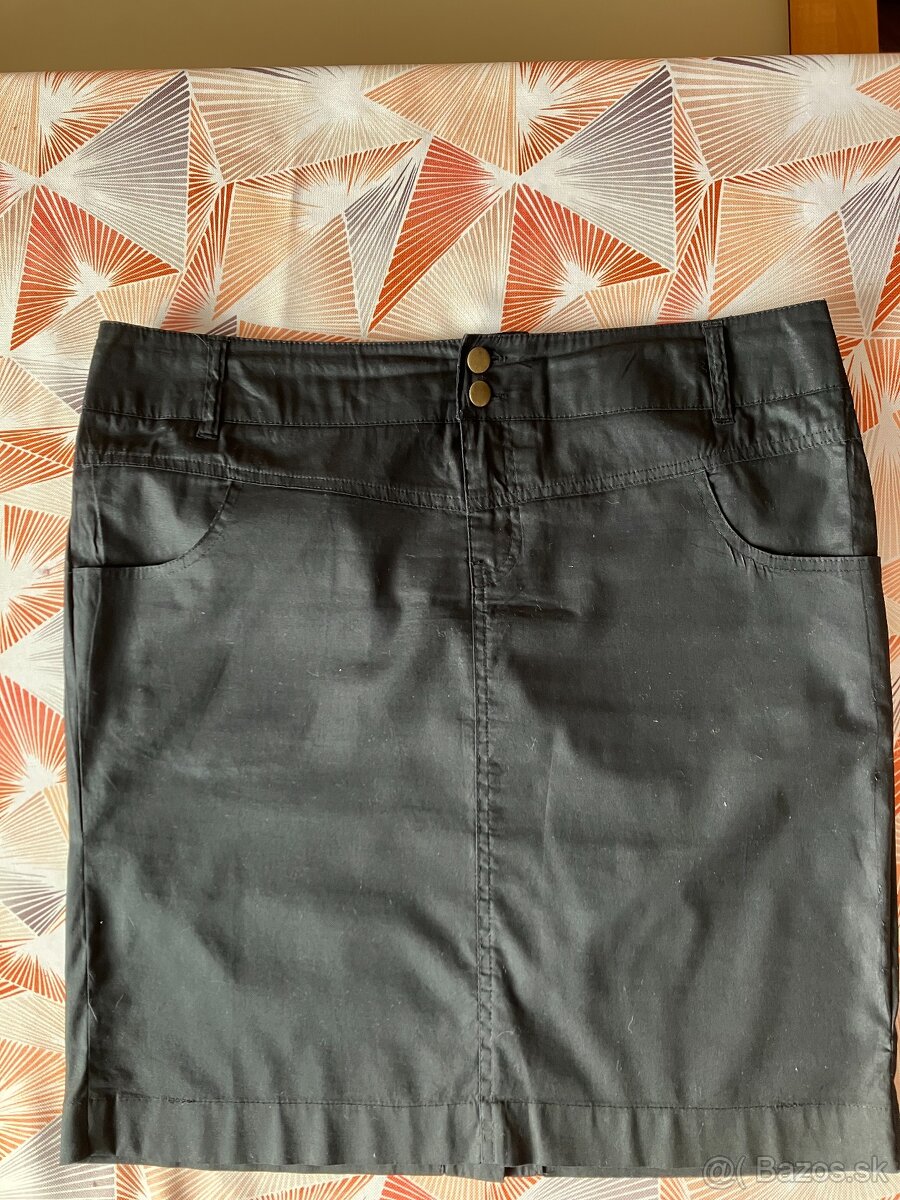 Predám čiernu športovú sukňu, s malým rázporkom vzadu. Zapínanie na zips, 2 vrecká na boku, 2 vrecká vzadu, pútka n a opasok. Veľkosť č. 44, dĺžka sukne - 53 cm šírka v páse - 98 cm , šírka cez boky - 112 cm. Cena 3 euro + poštovné.