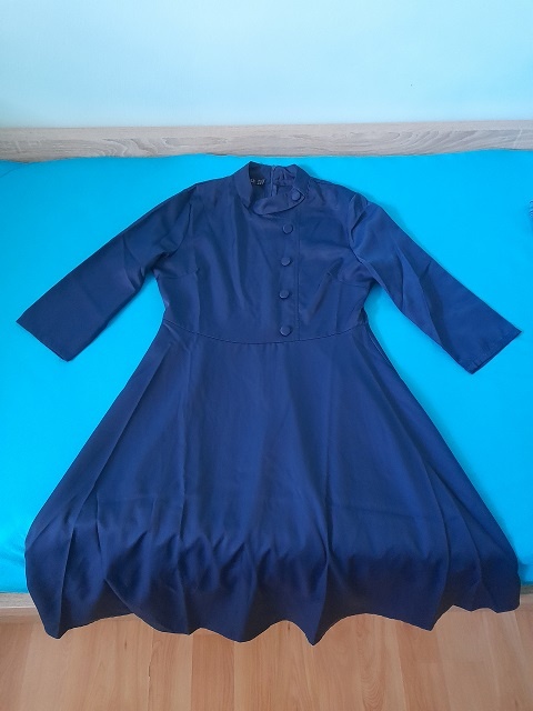 Modré letné šaty - [17.4. 2026]Veľkosť L/44/46. Krásna farba, v páse prispôsobive pomocou opasku, môžu sa zaviazať vpredu alebo vzadu. Sú mi bohužiaľ veľké, inak by som si ich nechala.
