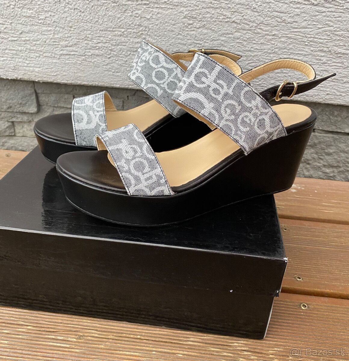 Predám kožené letné sandále talianskej značky Roccobarocco vo veľkosti 40. Výška opätku 8cm, platforma 3,5cm. Sú celokožené, iba logá zvrchu sú z látky. Nenosené, pôvodná cena 200€ a predám za 35€.