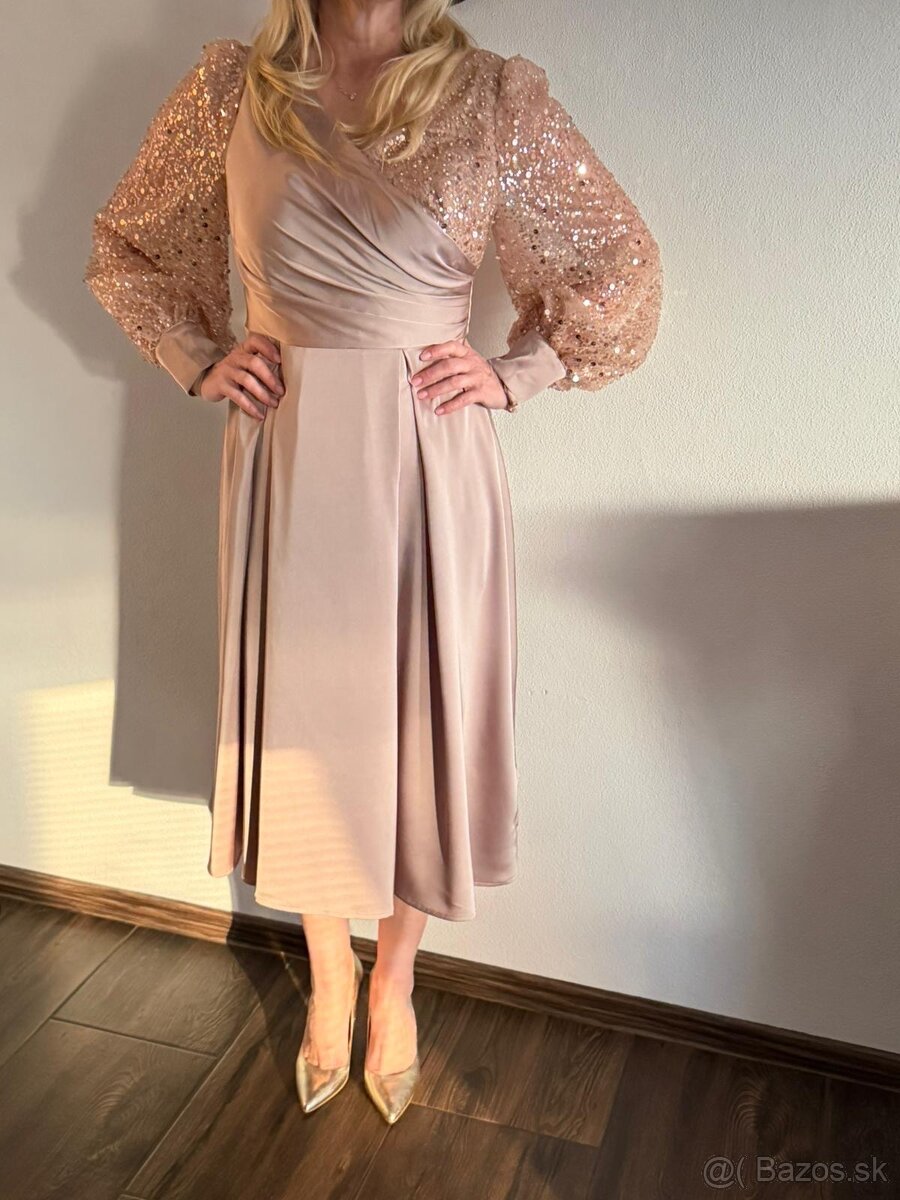 Predám spoločenské šaty púdrovobéžovej farby ,veľkosť M