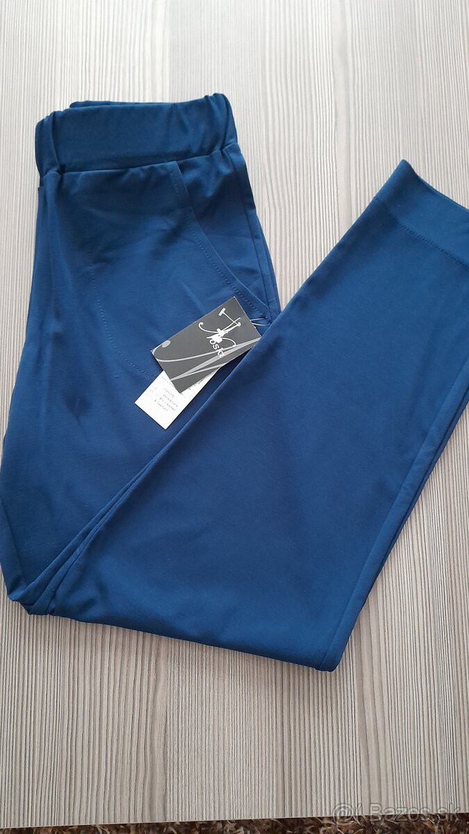 Predám dámske nohavice veľkosť S, tmavomodrej farby, pás na gumu, šírka v páse 68 cm, dĺžka 92 cm, úplne nové s visačkami.