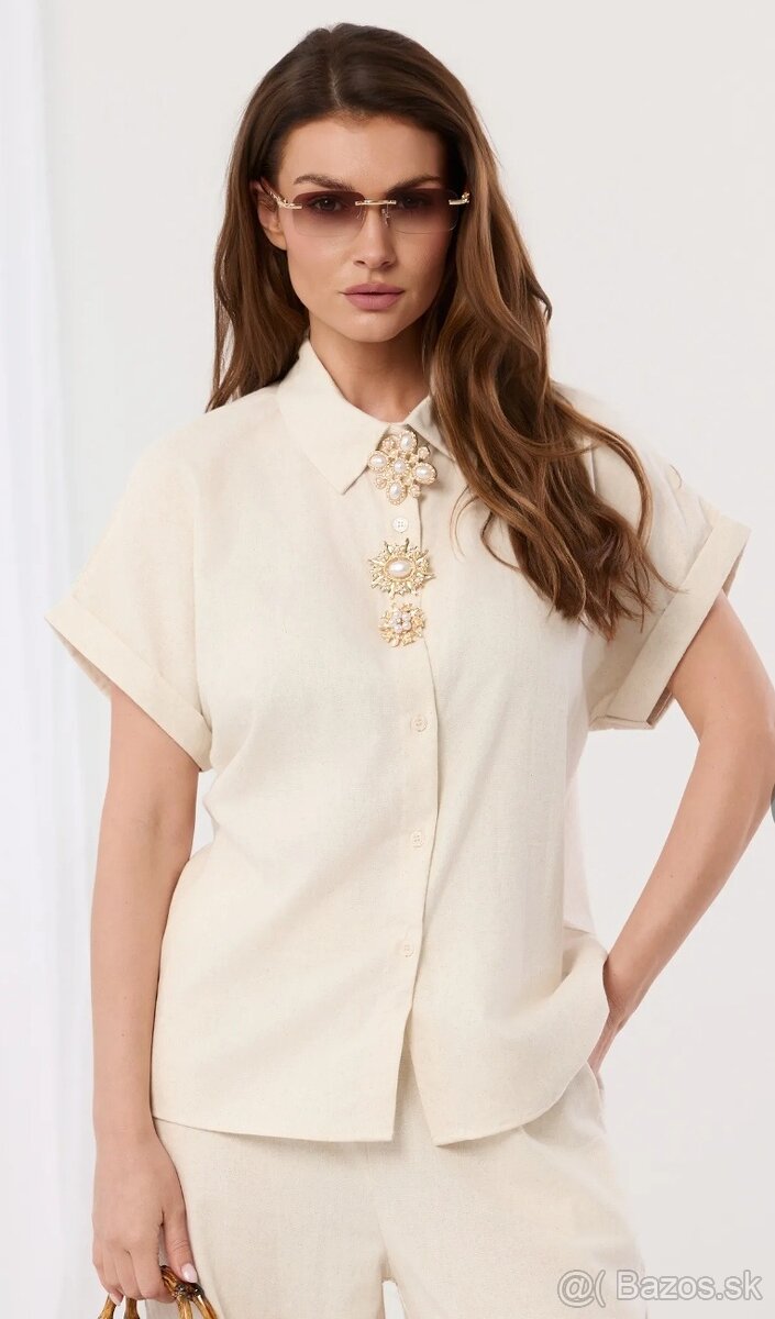 Blúzka s odopínateľnymi brosnami, krémová farba, Uni