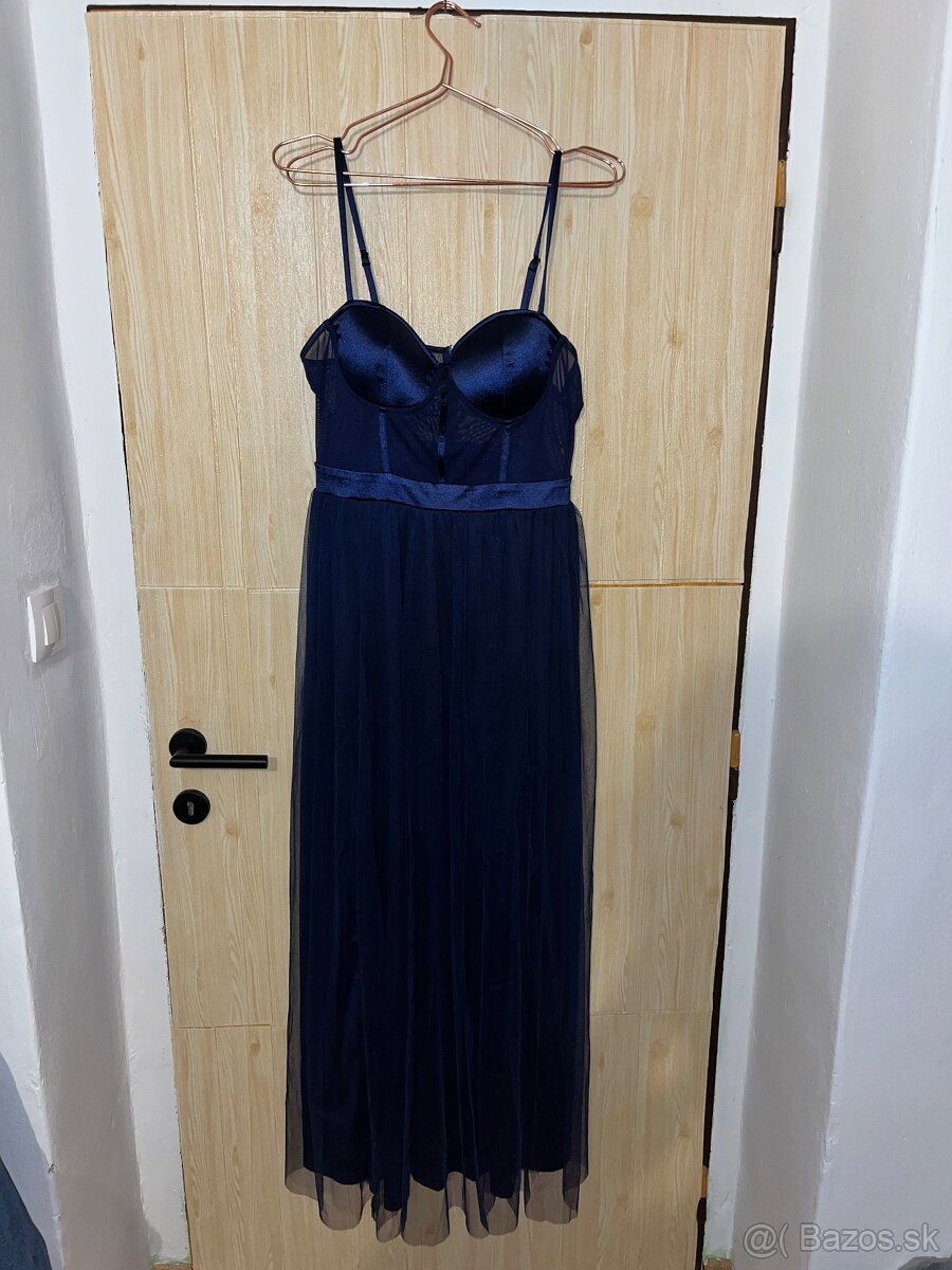 Spoločenské šaty na ples stužkovú svadbu tmavomodré raz oblečené veľ. XL zapínanie na zips ale látka je elastická