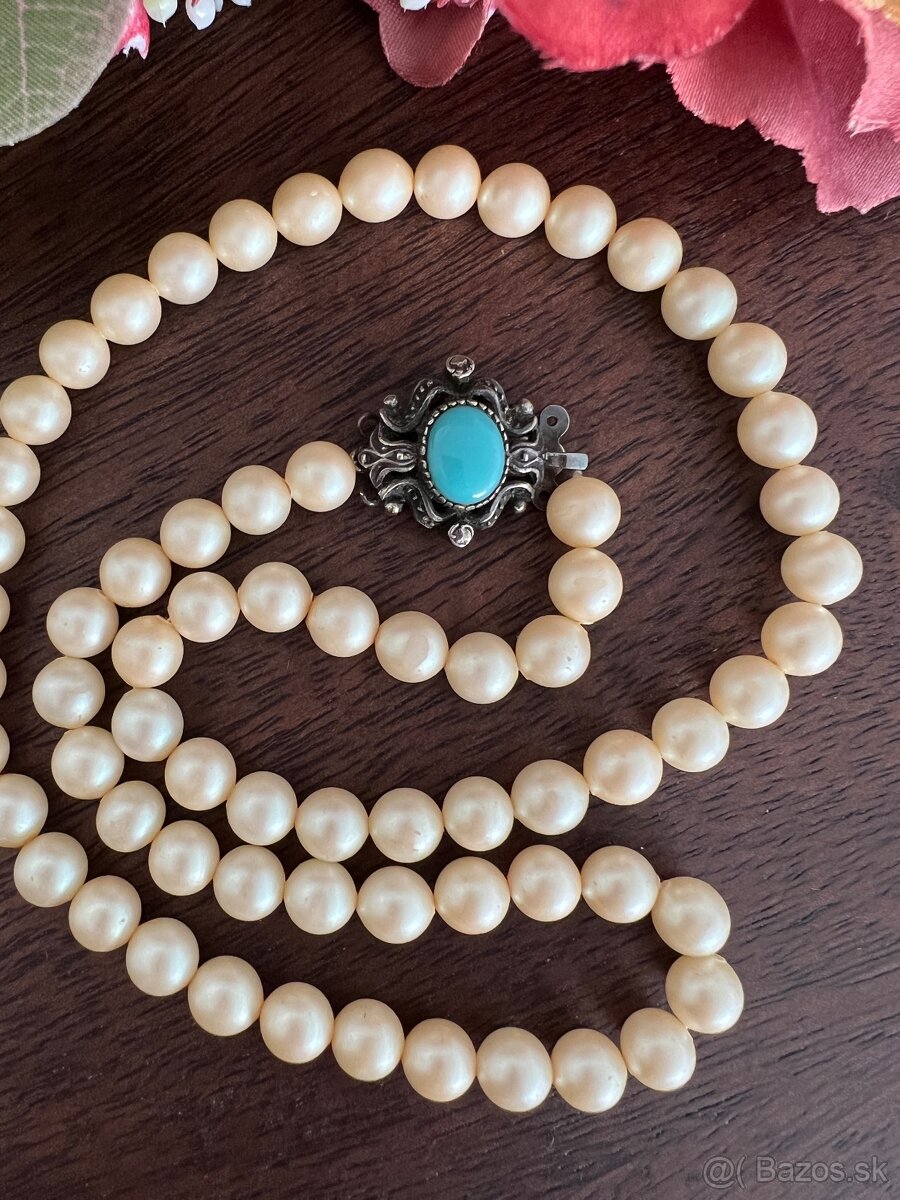 Krasne perly velmi stare maju okolo 80 rokov , zapinanie je zo striebra .pochadzaju zo Spanielska z Mallorky .