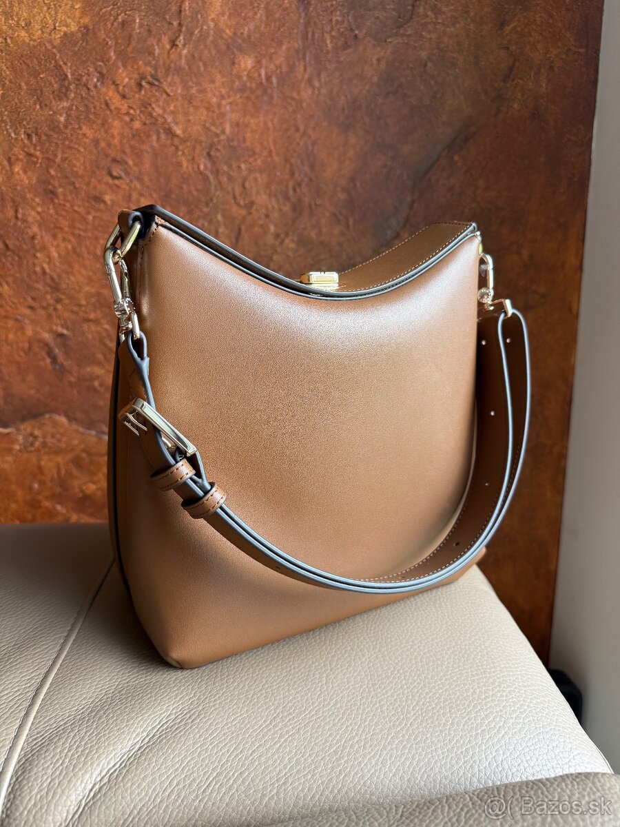Kozena kabelka Furla hnedej farby so zlatymi detailami. 100% stav. Nenosena.