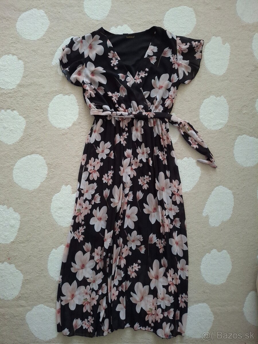 Dlhé šaty na príležitosť,aj na bežné nosenie. Pohodlné, pekne sadnú, majú podšívku. V oblasti,kde je opasok je elastická gumička. Oblečené asi 2x,bez poškodenia,ako nové. Veľkosť UNI bolo písané.