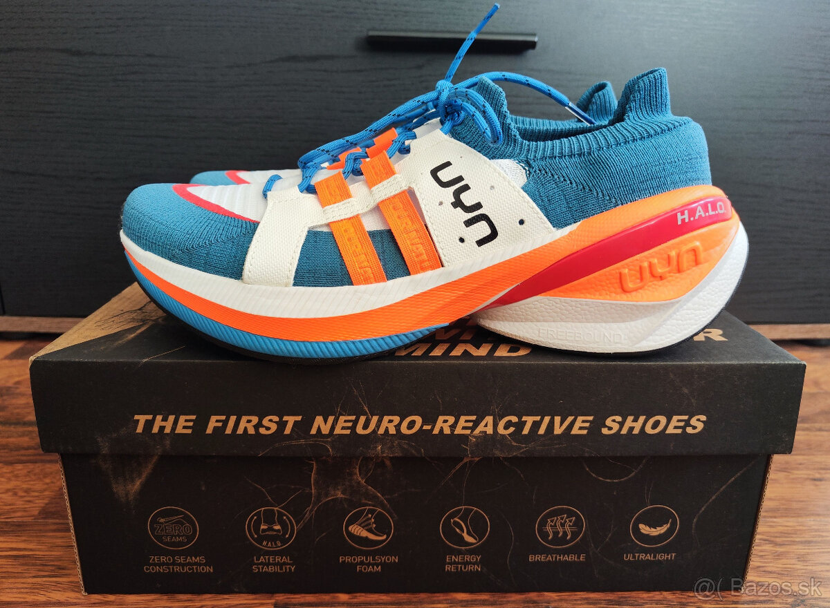 Predám nové bežecké cestné topánky UYN Synapsis, vo veľkosti 44 (28,8cm). Pôvodná cena 179€. Viac info: https://uynsports.com/en-fr/products/synapsis-black-man-grey-sx4-y100303-g046